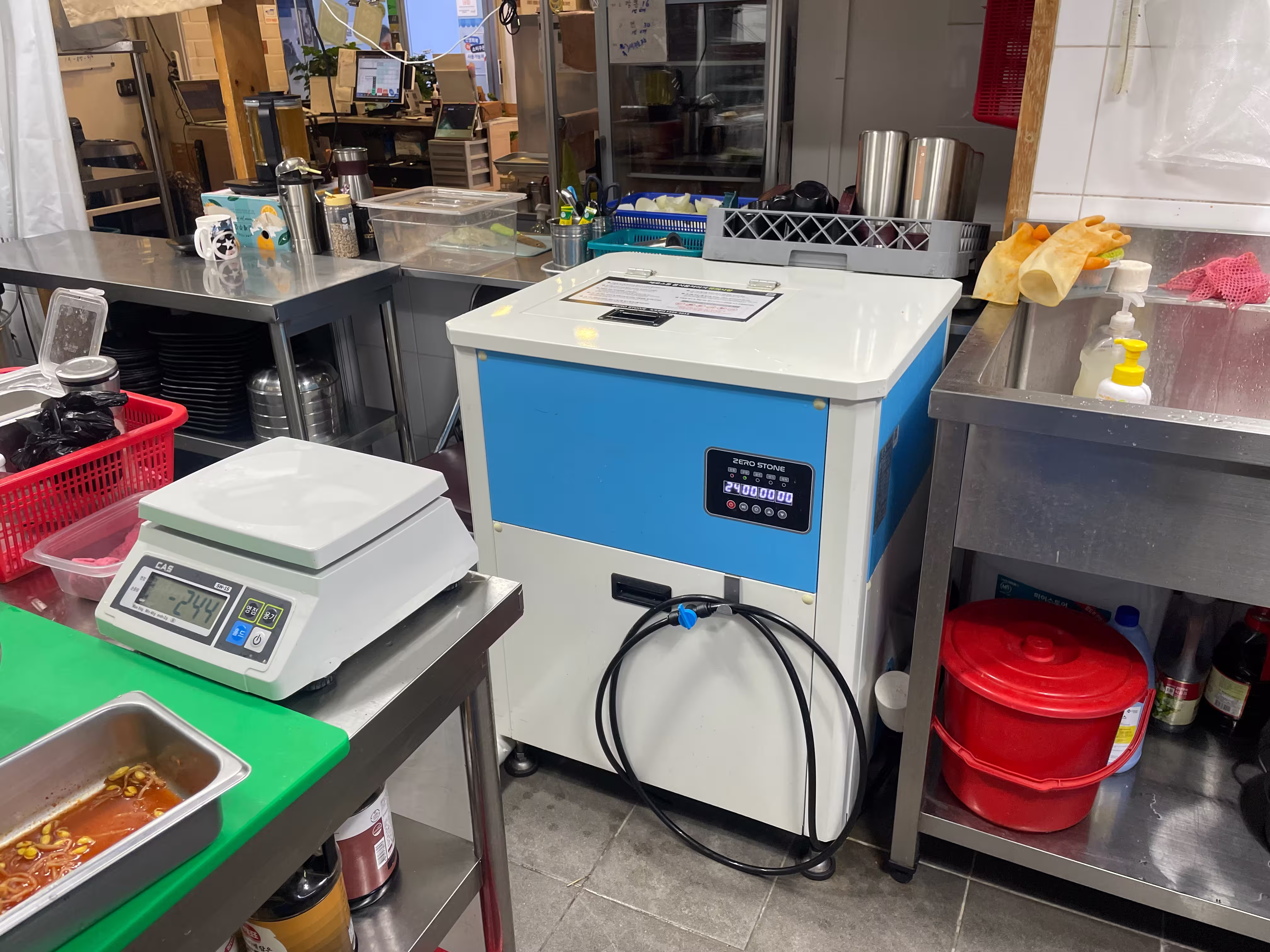 주방 인원이 혼자라 바쁜데, 제로스톤이 음식물 처리 같은
